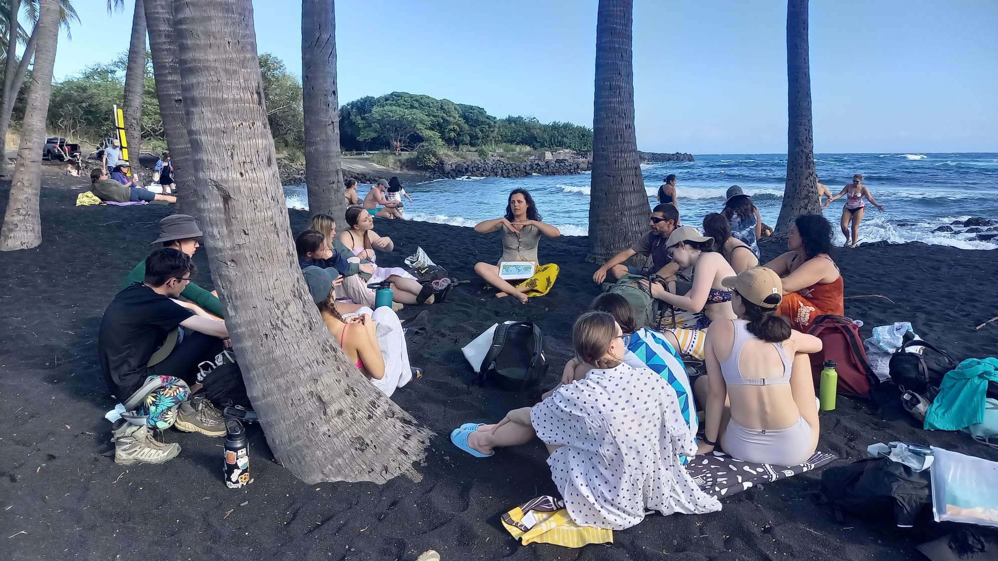 Par la suite, retour à Hilo pour une après-midi à la plage Carl Smith en espérant voir des tortues et pour se rafraichir. Certains ont fait du snorkeling pour voir des petits poissons tropicaux, d’autres se sont baigner dans l’eau translucide et ont admiré les magnifiques paysages. Cependant, petit accident pour Mia-Kim qui a marché sur un oursin. Visite au maître-nageur qui lui annonce que ce n’est rien de grave et qui lui montre une tortue pour lui changer les idées.