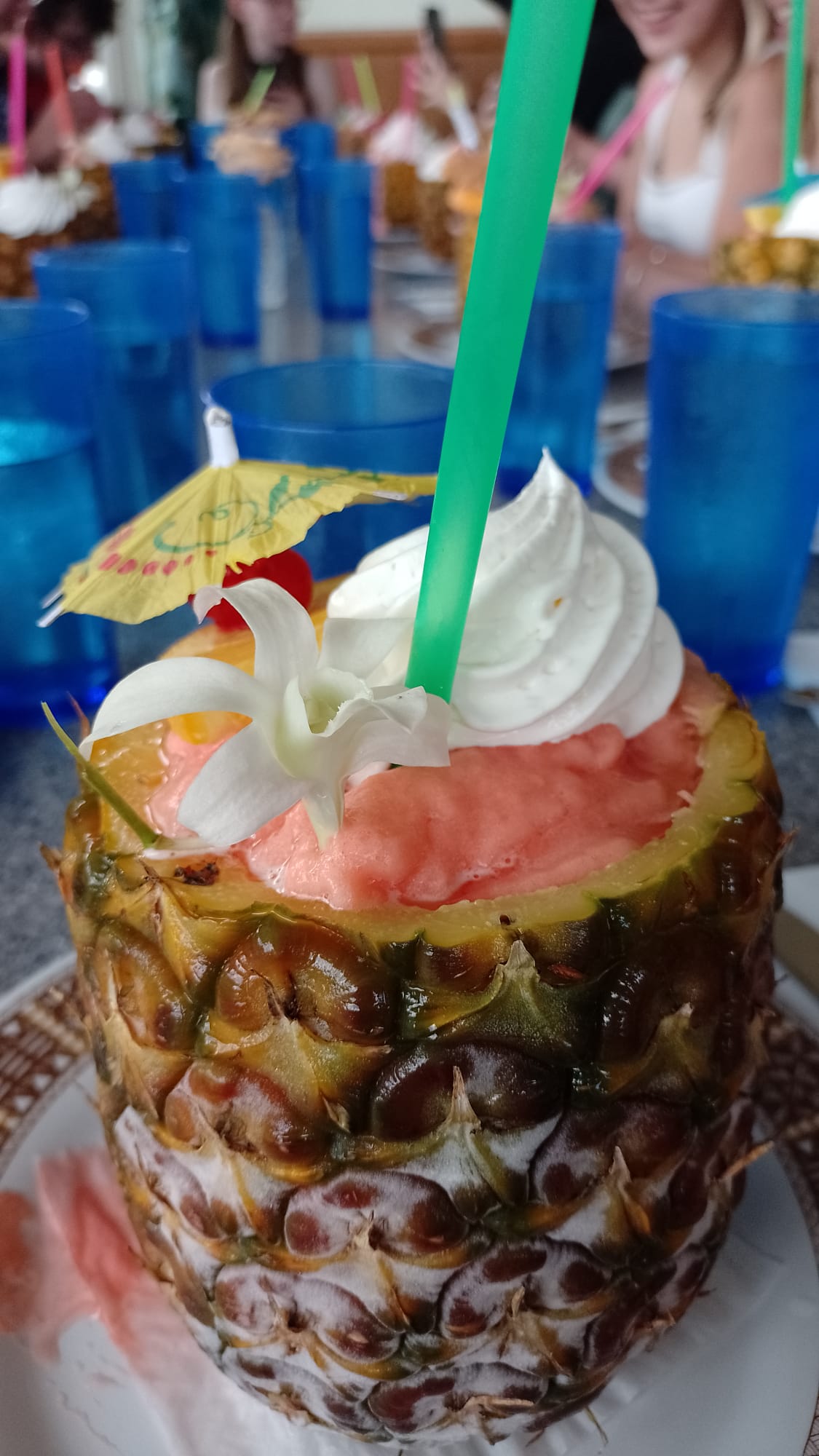 Nous en avons appris davantage à propos de la formation d’un tsunami, des risques et dangers de cette catastrophe, des signes avant-coureurs d’un tsunami ainsi que des informations sur différents tsunamis dans le monde, comme celui au Japon en 2011 et celui au Chili en 1960. À la suite de cette expérience enrichissante, nous nous sommes rendus au “Pineapples Island Fresh Cuisine” afin de déguster notre diner. Nous avons eu droit à un smoothie dans une ananas, qui était une recette créée par la cheffe. Le repas principal nous à rassasié. En effet, des délicieux hamburgers nous ont été offert avec un accompagnement de frites maison.