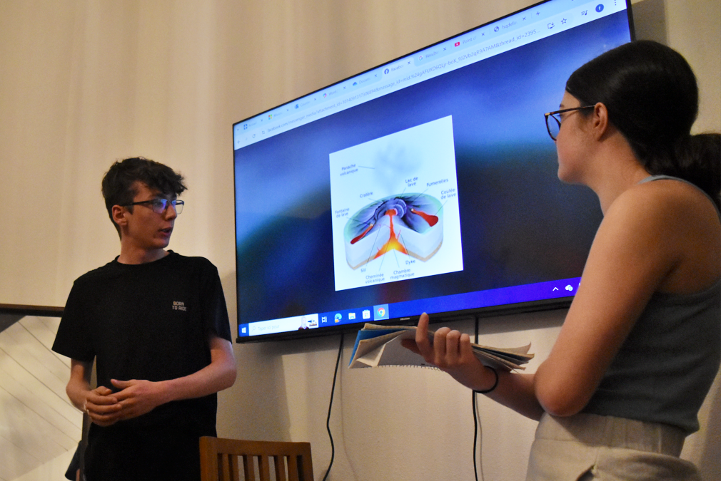 Ce matin nous avons eu droit à un réveil relativement tranquille. En effet, notre déjeuner a été dégusté à 9h15, ce qui nous a donné l’opportunité de dormir un peu plus qu’à l’habitude étant donnée la nuit mouvementée qu’on a passé. Ensuite nous avons travailler sur les présentations que nous allons réaliser demain soir. Chaque présentation est reliée à un concept scientifique que nous avons pu découvrir concernant les volcans.