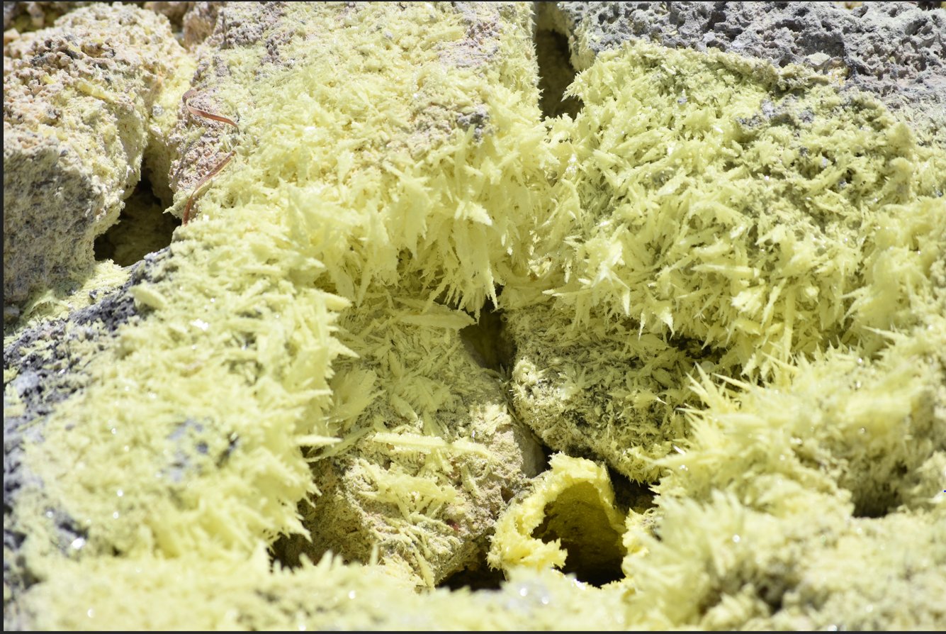 Ensuite, nous avons effectué une randonnée jusque dans la caldera au cœur du cratère. Pendant le trajet nous avons vu des ”Steam Vents”, qui sont des trous ou des fissures où l’eau s’infiltre pour ensuite s’évaporer à cause de la chaleur du volcan. Nous pouvons maintenant dire que nous avons dîné dans le volcan le plus actif du monde (et même fait pipi pour certains d’entre nous). Nous avons eu une présentation sur la formation du volcan et les divers types de roches autour de nous. Ensuite nous avons entamé la remontée qui fut plus éprouvante que la descente, mais nous en sommes tous sortis vivants. Pendant le retour, nous avons emprunté un chemin différent et avons pu observer des “sulfure banks” , des émanations de souffre jaune fluo qui remontent de la terre.