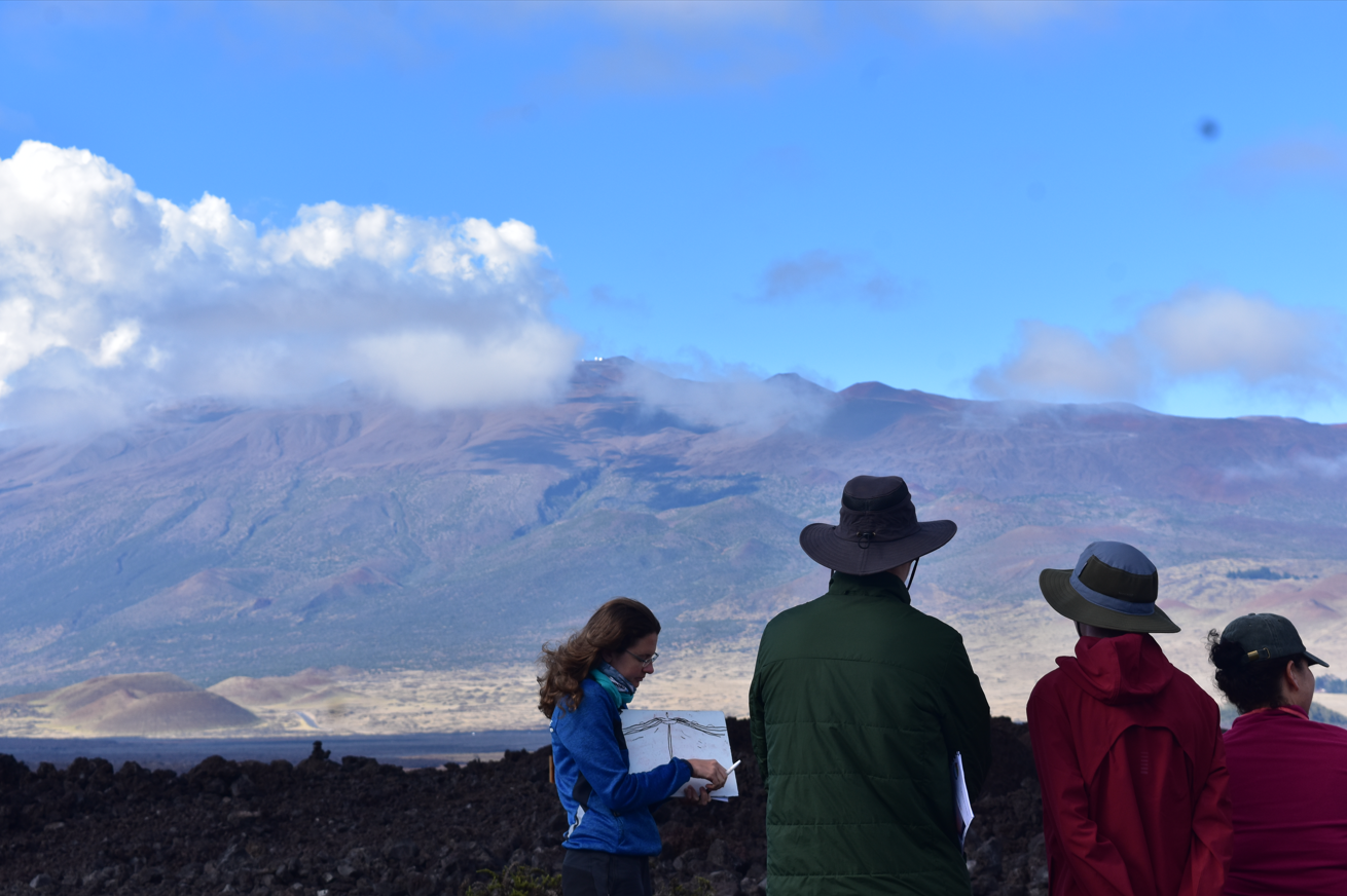 Pour continuer, nous avons repris la route à 14h pour aller voir 2 des volcans de Big Island. Nous nous sommes tout d’abord arrêtés sur la route allant vers le Mauna Loa pour parler des types de volcans. Nous avons alors appris que les volcans d’Hawaii sont des volcans boucliers qui sont caractérisés par leur lave fluide et leur forme ayant une pente douce (inférieure à 10 degrés). Pour poursuivre, nous sommes montés sur le Mauna Kea afin d’avoir une vue spectaculaire et observer les étoiles.