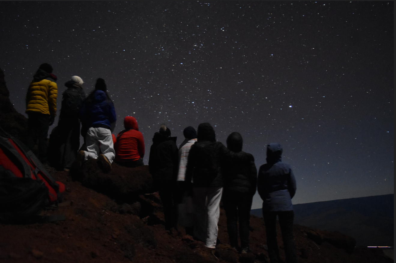 Tout en attendant le coucher du Soleil, nous avons encore une fois fait un point science pour expliquer les zones les plus à risque où les coulées de laves coulent lors des différentes éruptions. Pour finir cette soirée, monsieur Frédéric nous a introduit à l’astronomie en nous montrant la constellation d’Orion, la planète Vénus, la Voie lactée et bien d’autres. Nous sommes alors revenus au gîte vers 21h30 pour une bonne nuit de sommeil.