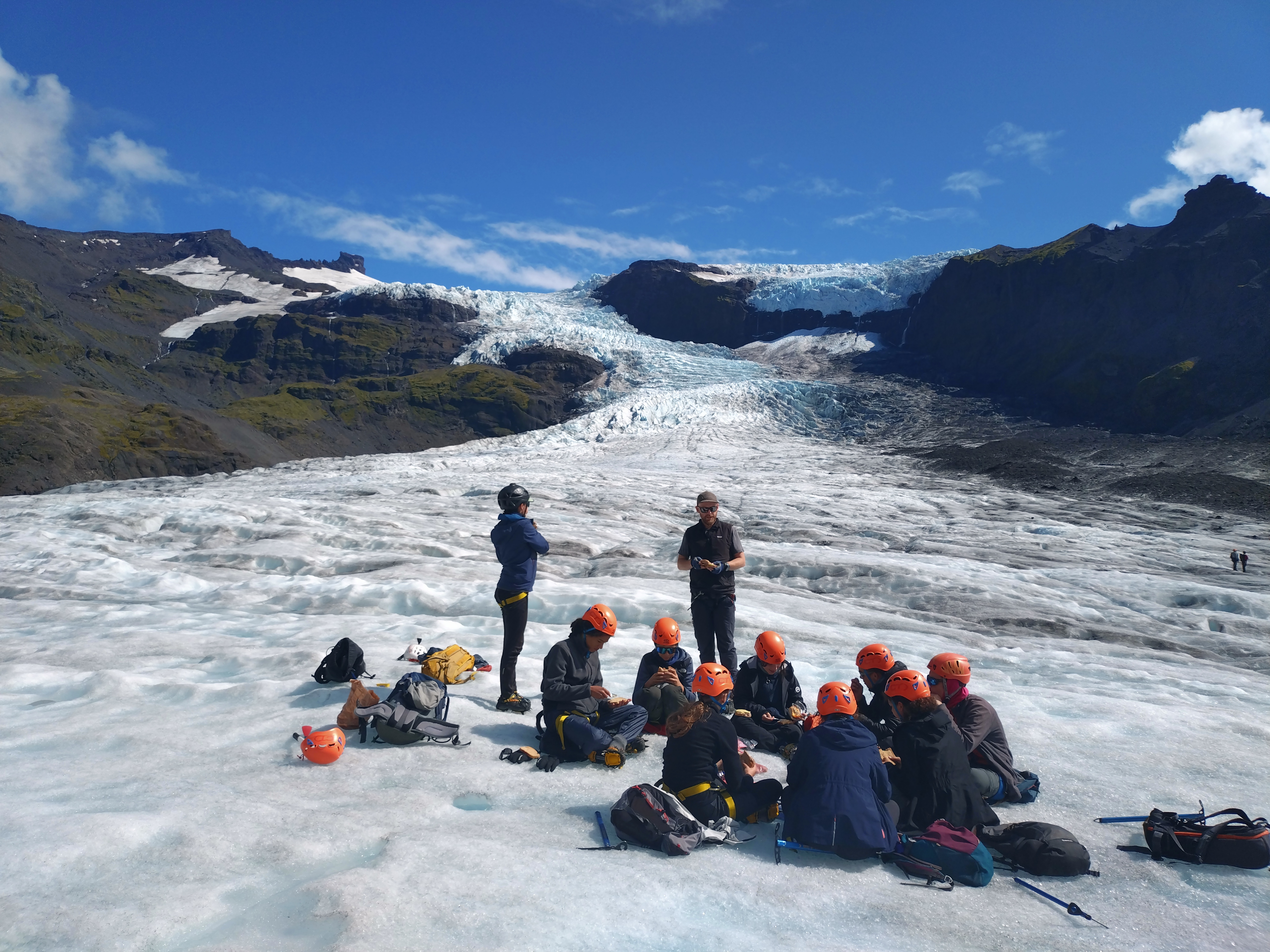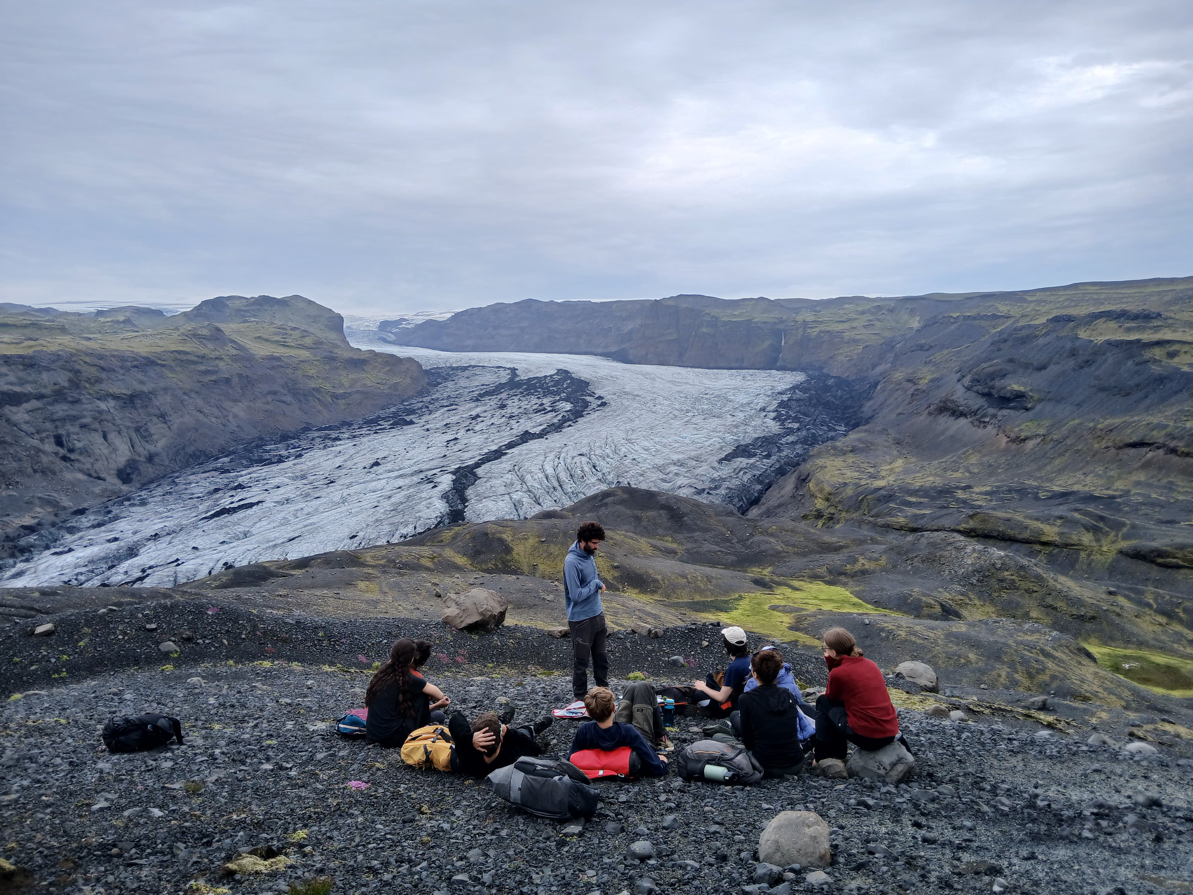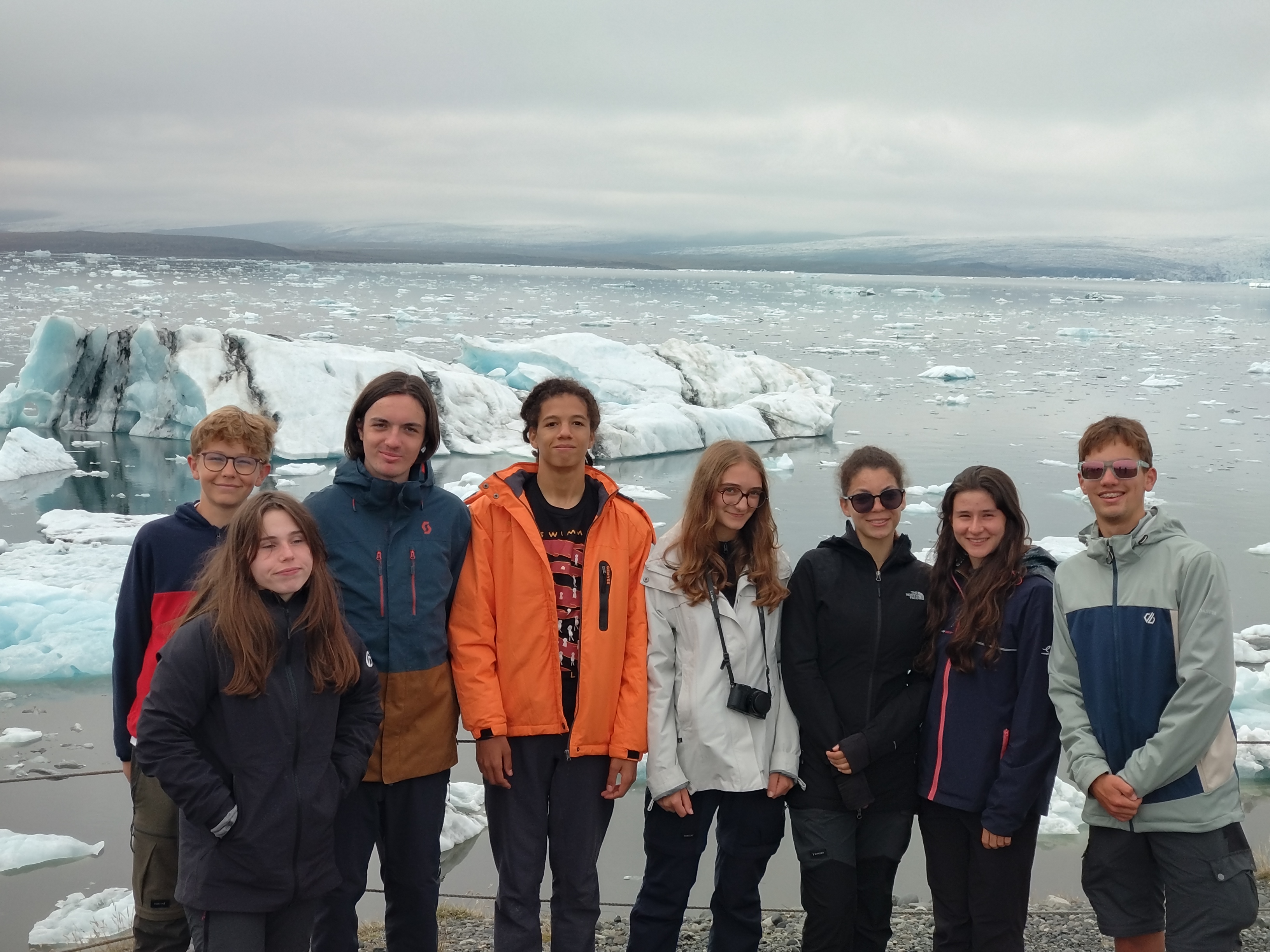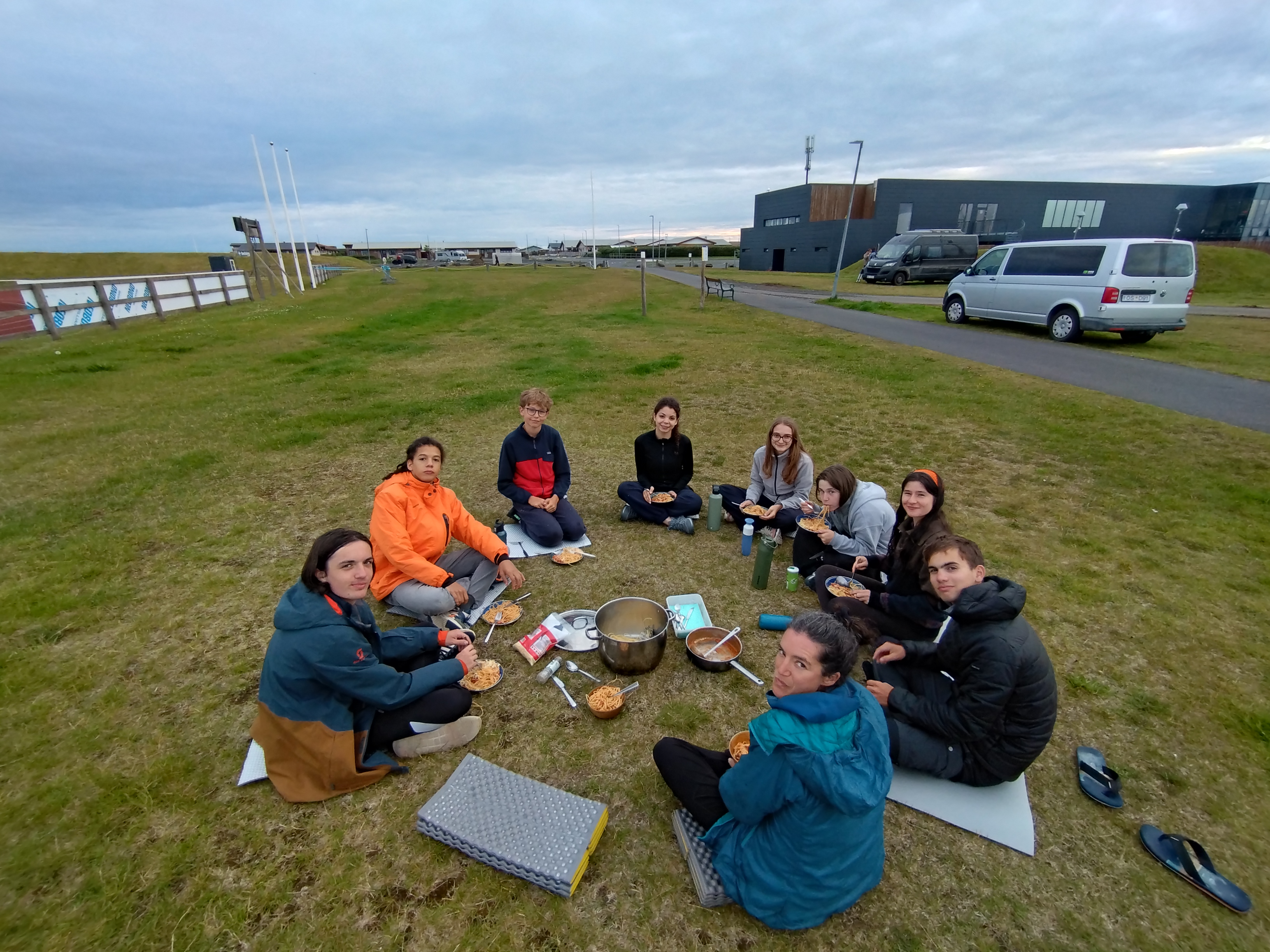 Après l’éprouvante journée d’hier, nous avons dormis jusqu’à l’horaire ô combien nécessaire de 9h. Malheuresement, la pluie était également au rendez-vous. Plusieurs tentes ont eu des fuites lors des plus fortes averses et Samuel a pu constater que son duvet était trempé au retour du petit déjeuner. Malgré tout, l’humeur générale était exellente (la participation de Pauline y a fortement contribué). Au vu des contraintes météo, nous avons reporté la balade pour récupérer les images de la deuxième caméra filmant un glacier à l’après midi, pour lui préferer une matinée à la piscine (quitte à être trempés, autant que ce soit agréable). Puis nous nous sommes rendus à la maison du parc national du Vatnajökull pour y déjeuner et visiter sa petite exposition sur l’Islande et son environnement. La météo s’étant éclaircie, nous avons pu ensuite réaliser la seconde partie de notre projet scientifique, en contemplant une marge proglaciaire (ancien emplacement du glacier avant qu’il se retire, ici très marquée par des moraines : des buttes de terre et de cailloux repoussés par le glacier lors de son avancée). La soirée étant déjà bien avancée, nous sommes rentrés au camp pour y déguster des spaghettis à la tomate. Et pour finir le journée en beauté mangue sechée au dessert et petite vaisselle de 30 min pour retirer la suie des casseroles. Nous finissons donc cette journée par un temps convivial avec un jeu et nous vous informerons du gagnant dans le prochain épisode...
