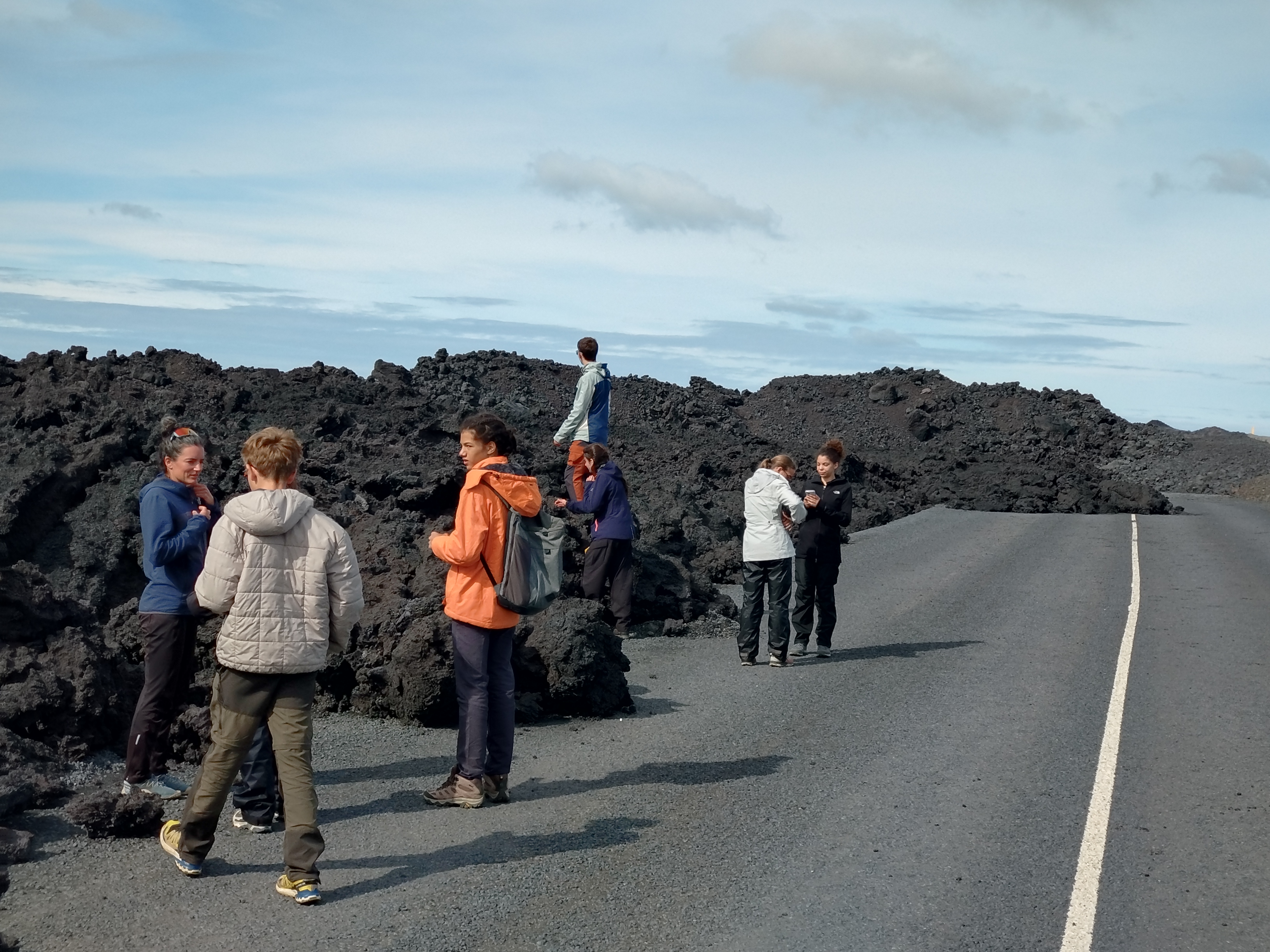 15h45 : observation d’un champ de lave datant de l’année dernière accompagné de son lot d’informations géologiques, nombreuses et précises, données par Laura.