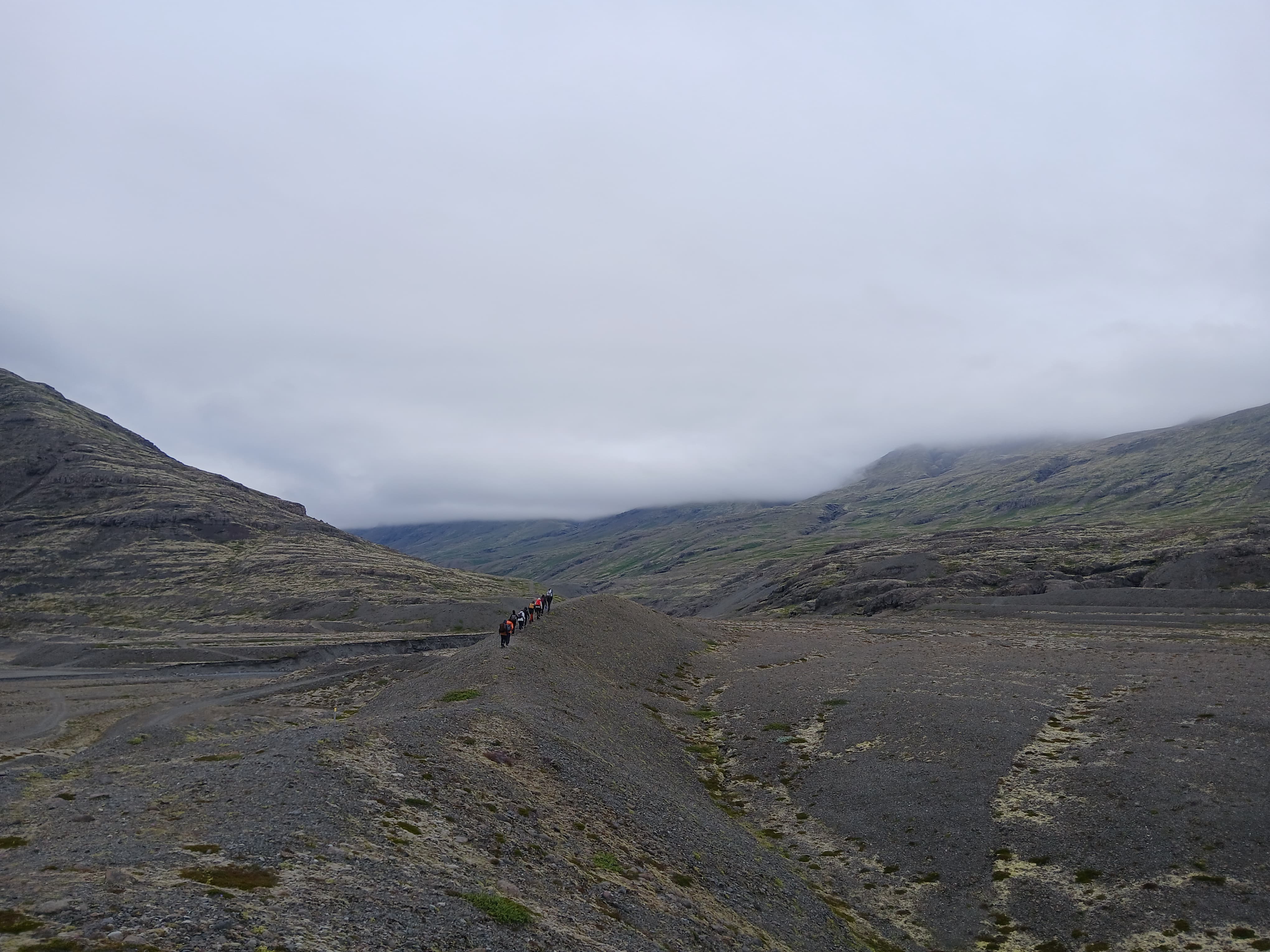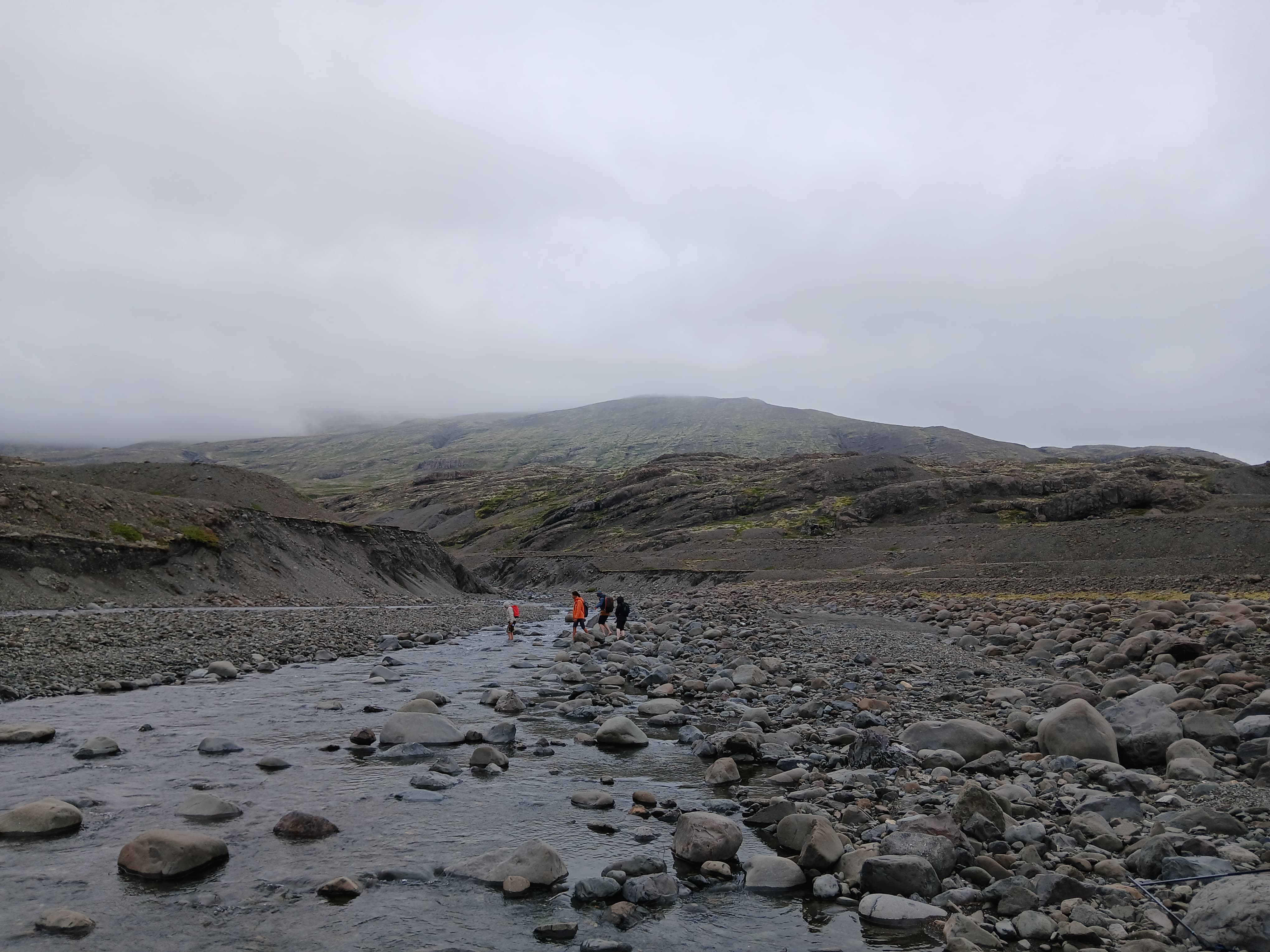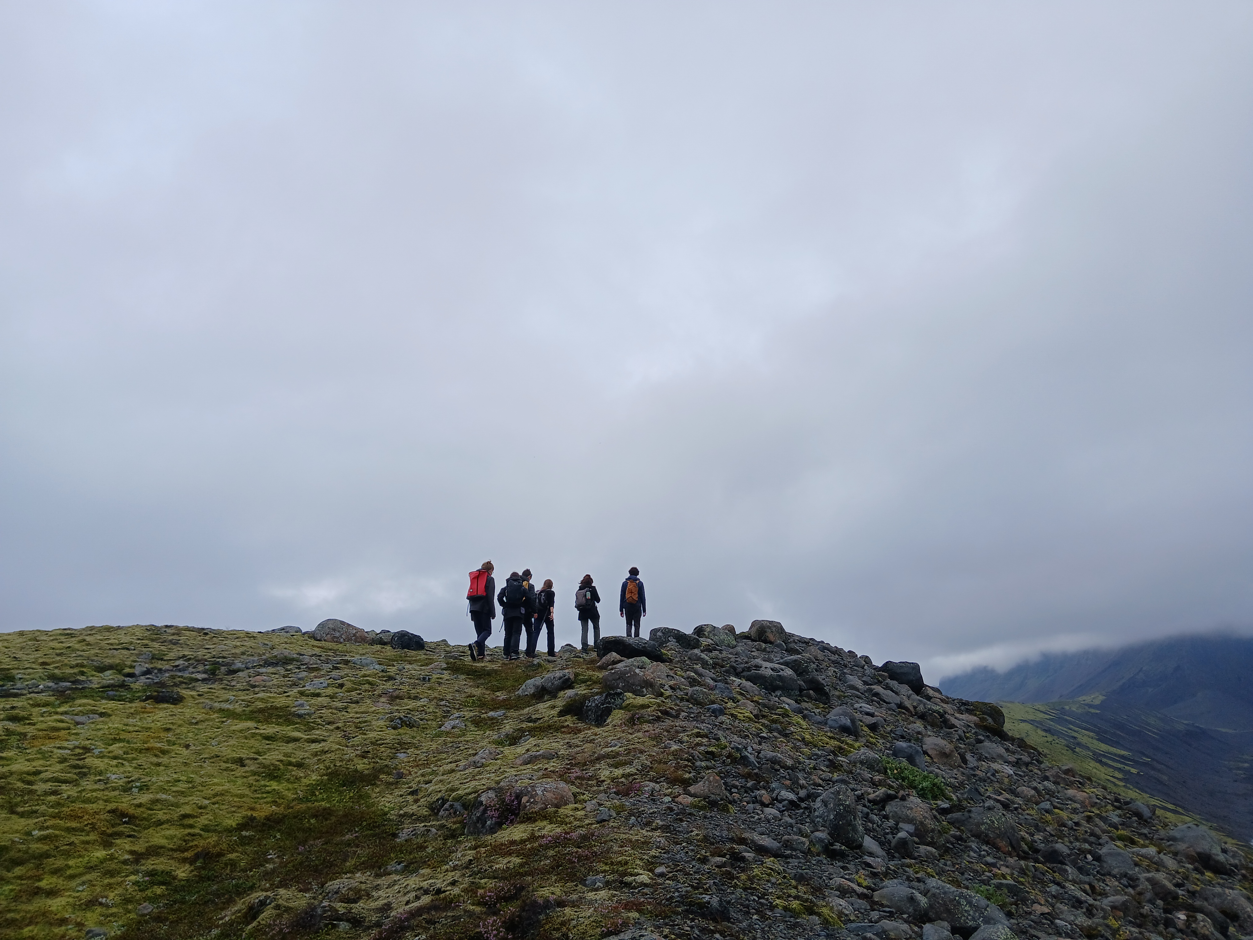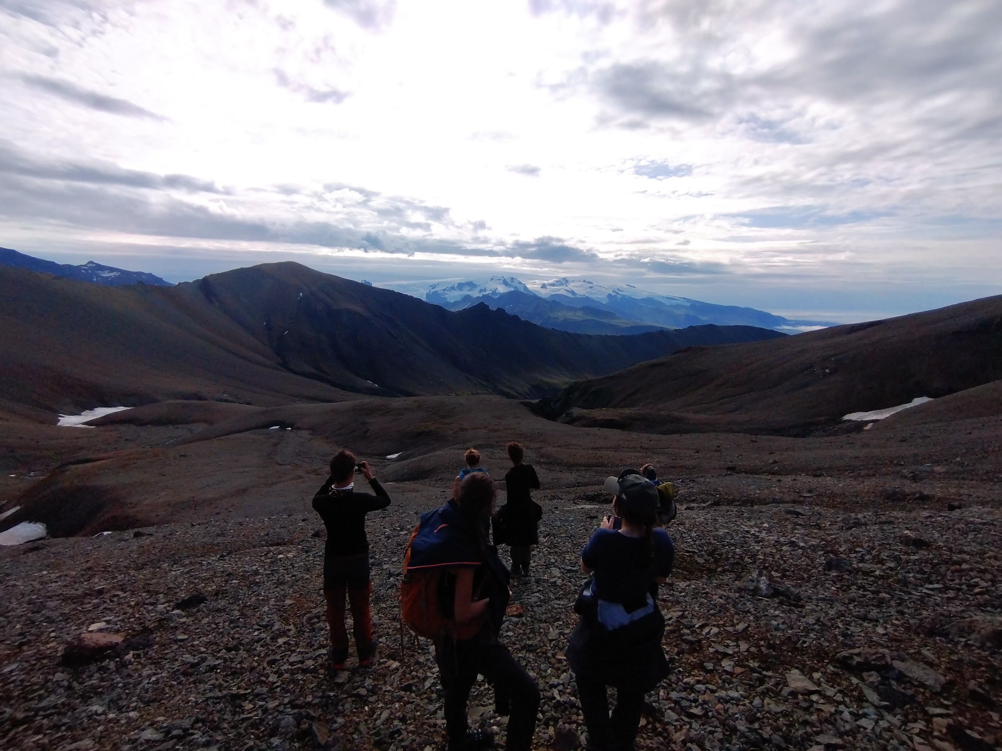 Nous nous levâmes à 6h dans le but d’atteindre un sommet, avec une vue sur les plus hauts sommets d’Islande, puis de redescende avant que la pluie n’arrive. Nous y arrivâmes à environ 9h30 puis nous rangeâmes le camps et partirent pour entamer une longue descente qui, à la fin d’un long et sablonneux plat, nous parut interminable. Et enfin pour clôturer la matinée vers 13h00 nous mangeâmes de délicieux sandwichs juste avant qu’il ne commence à pleuvoir.