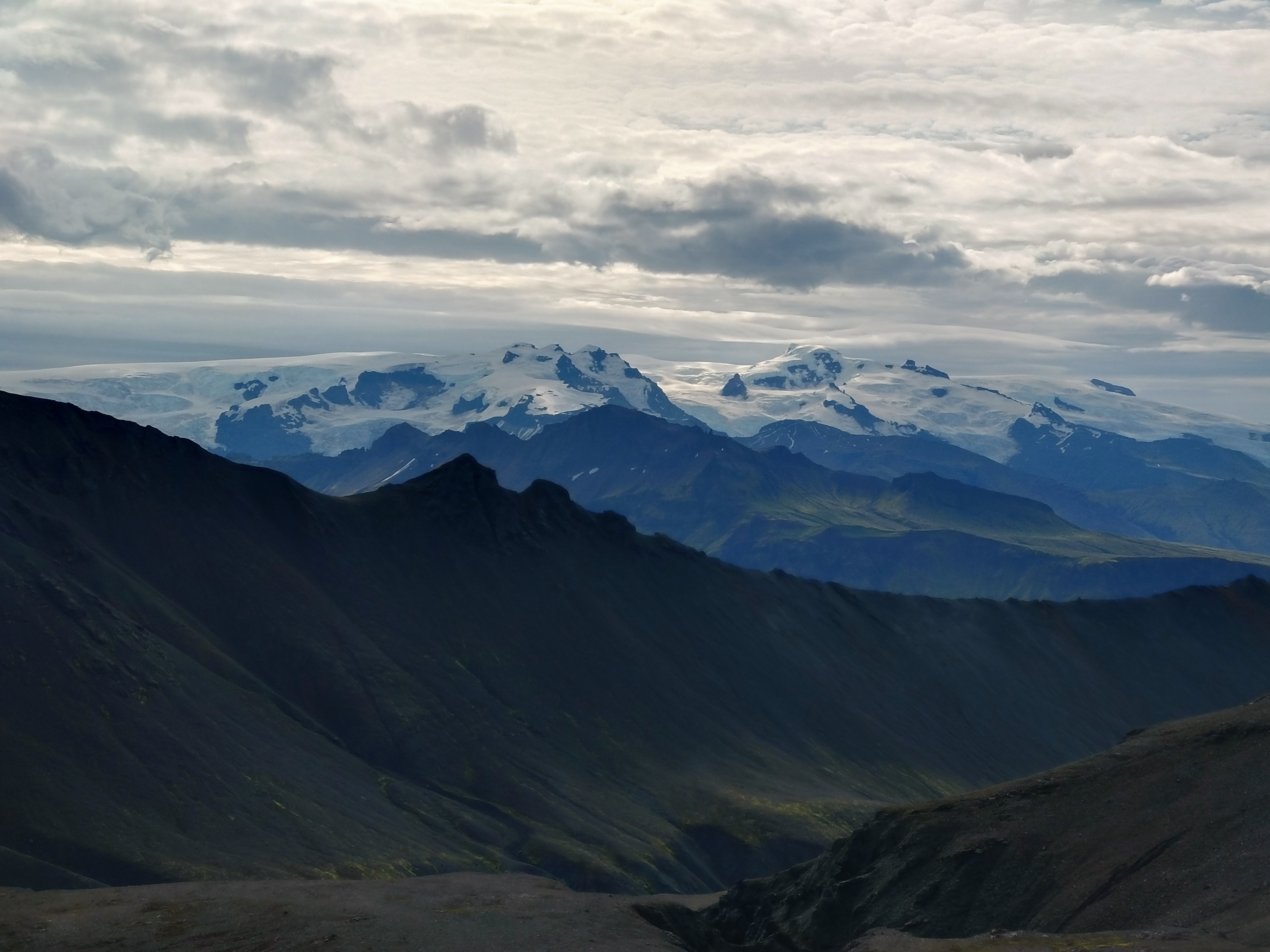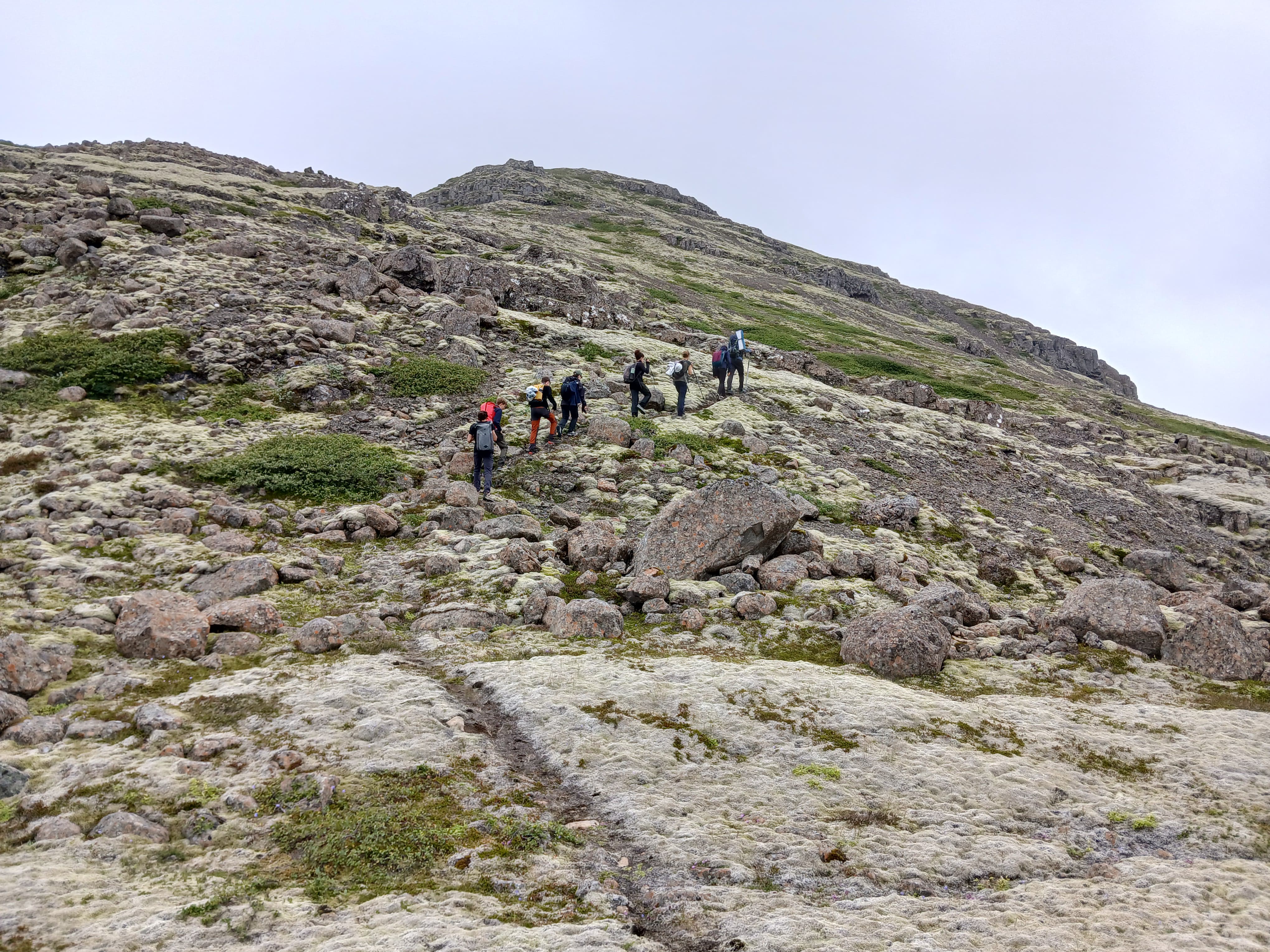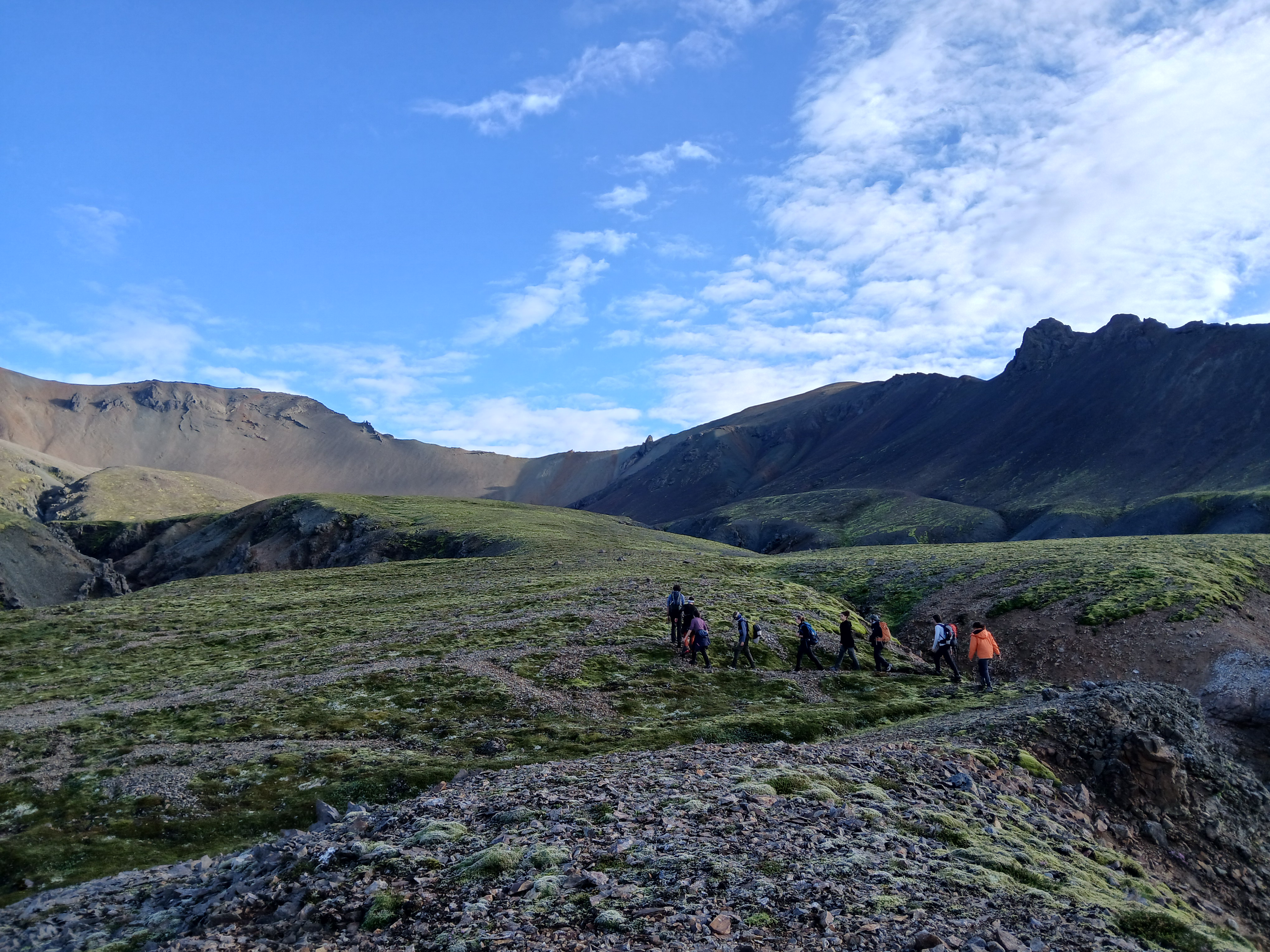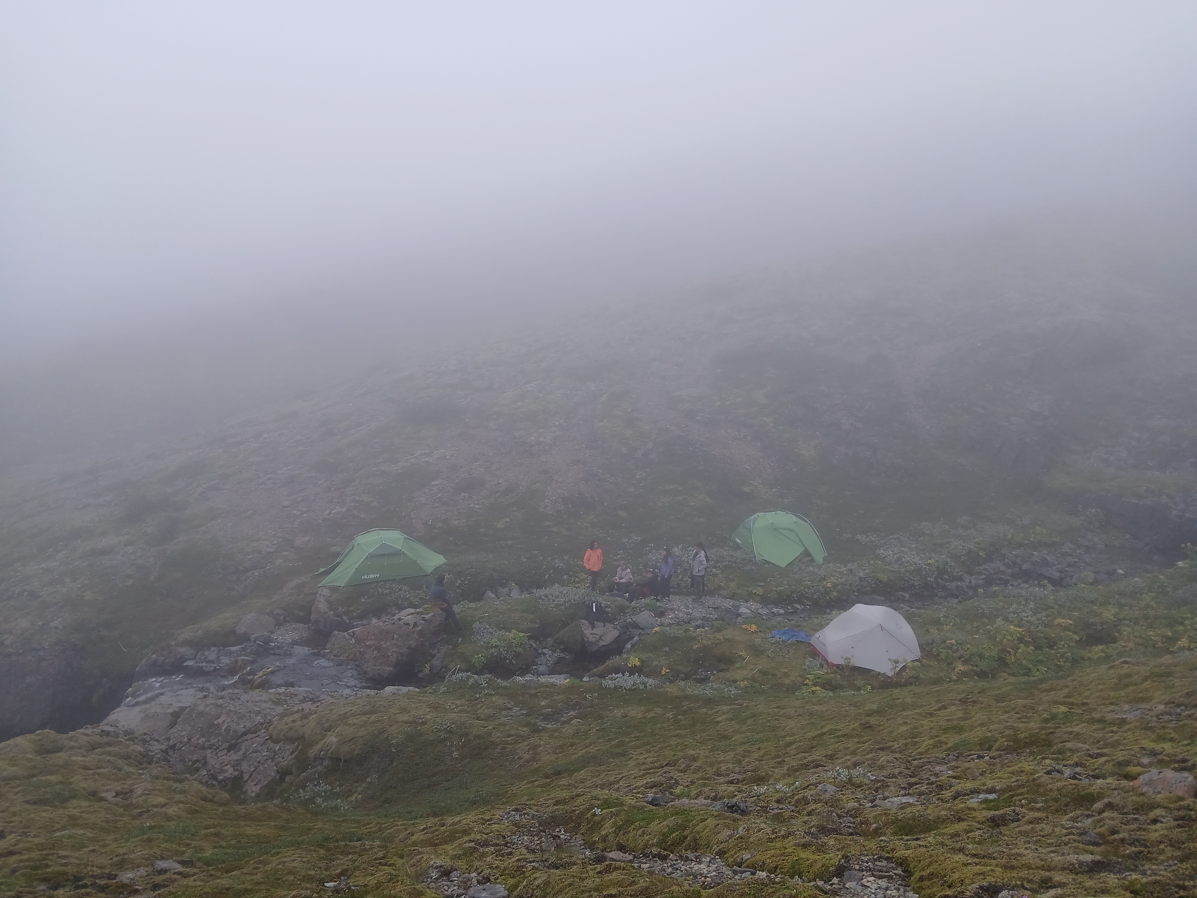 Nous nous levâmes à 6h dans le but d’atteindre un sommet, avec une vue sur les plus hauts sommets d’Islande, puis de redescende avant que la pluie n’arrive. Nous y arrivâmes à environ 9h30 puis nous rangeâmes le camps et partirent pour entamer une longue descente qui, à la fin d’un long et sablonneux plat, nous parut interminable. Et enfin pour clôturer la matinée vers 13h00 nous mangeâmes de délicieux sandwichs juste avant qu’il ne commence à pleuvoir.