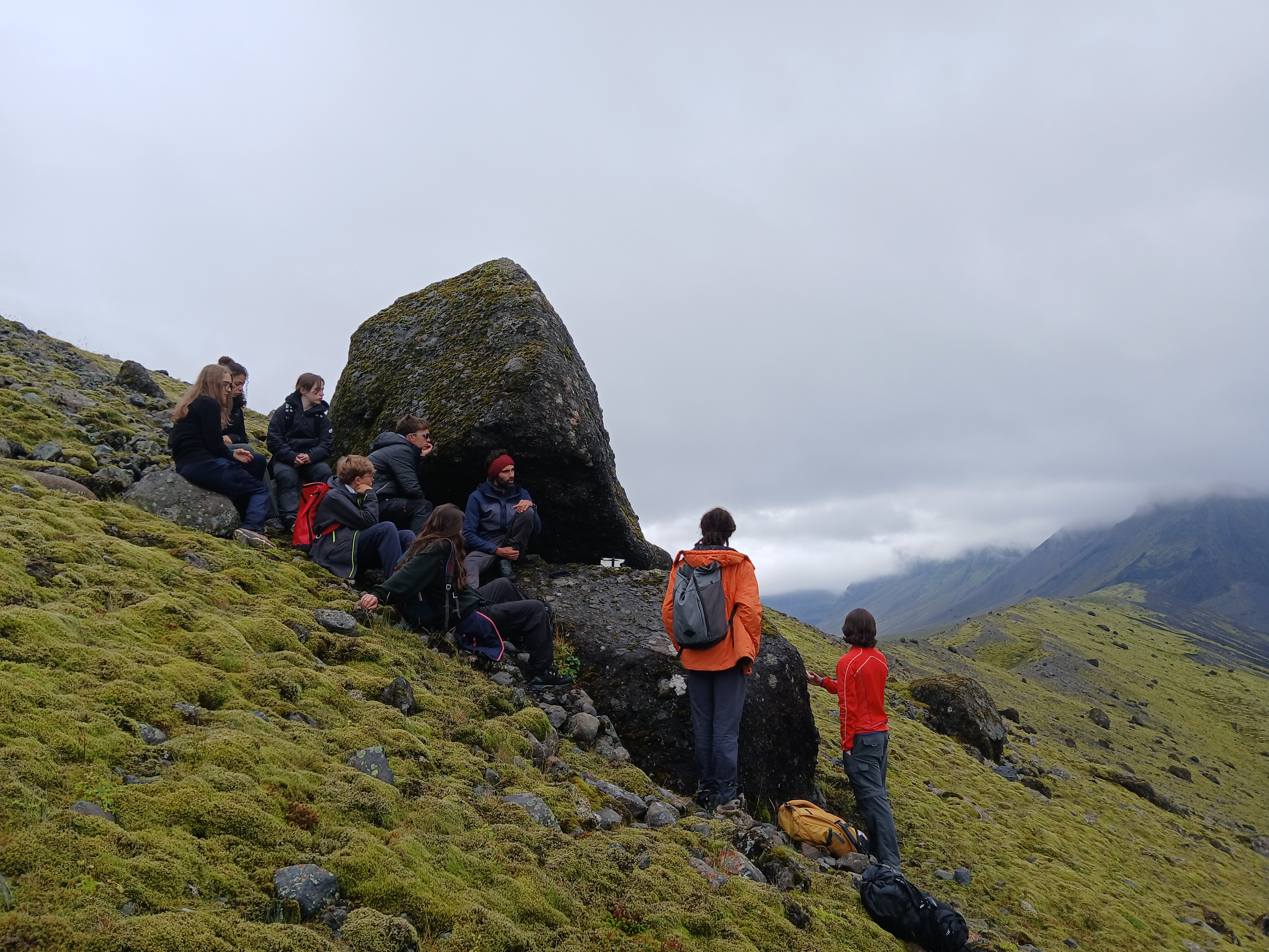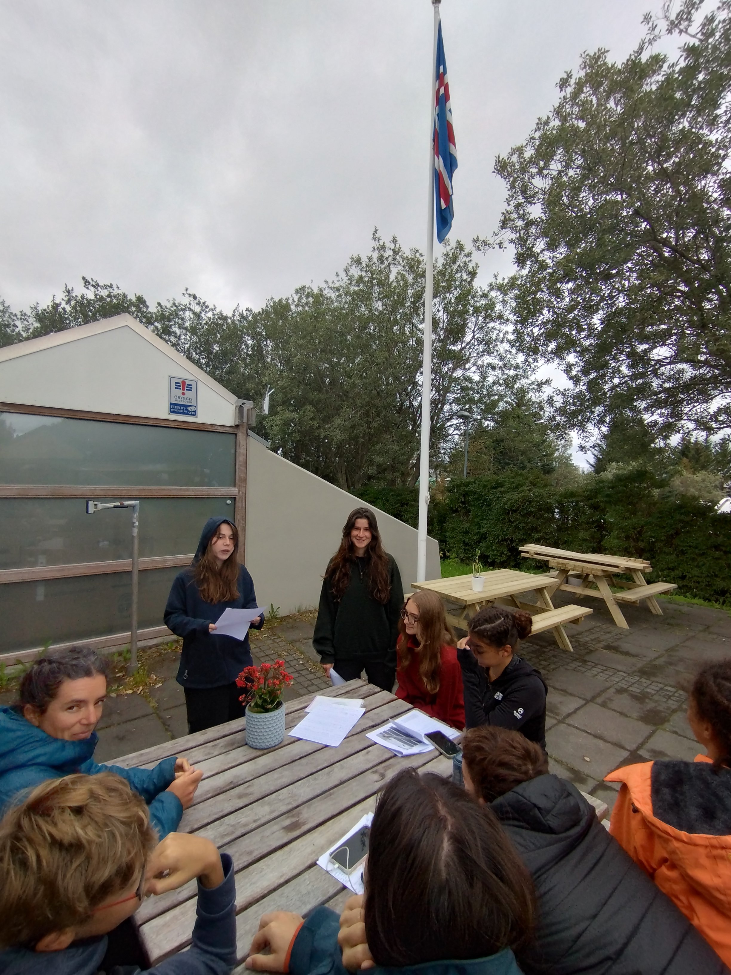 Aujourd’hui c’est dernière journée islandaise assez tranquille. Nous commençons par un petit travail de groupe, afin que chacun puisse présenter un sujet ou une thématique abordée pendant le séjour au reste du groupe. Cela engendre des échanges animés au camping.