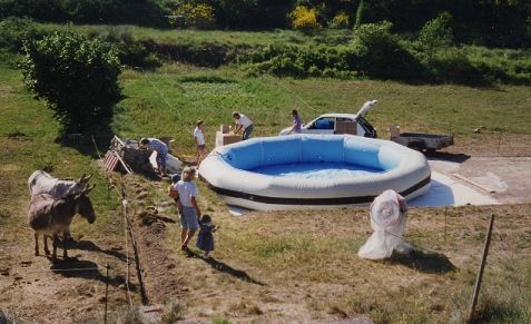 (Il y a 3 ânes qui regardent le montage de la piscine ? [1])