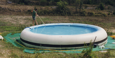 Je possède dans mon jardin d’une piscine hors-sol de marque Zodiac (oui oui comme le hors-bord), gonflable (oui oui comme le hors-bord), en toile caoutchoutée (oui oui comme le hors-bord), de forme circulaire de 6 m de diamètre (pas comme le hors-bord) avec de l’eau dedans (pas comme le hors-bord) !!!