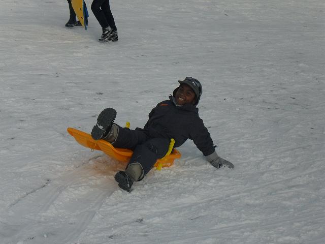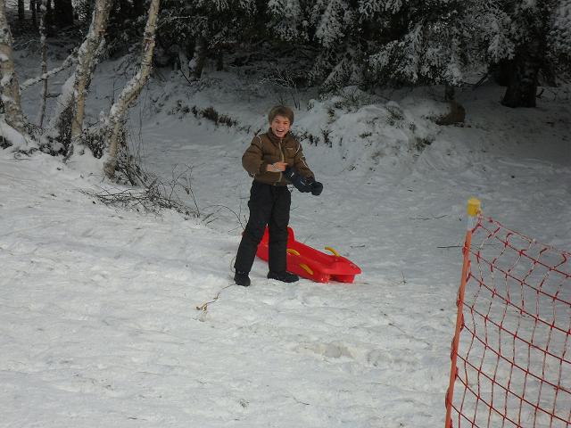 Après-midi, activité luge qui s’est fini en bataille de boules de neige géante